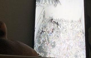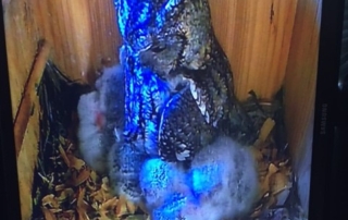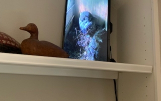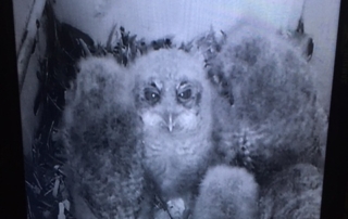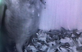 We encountered a new problem this month. We turned the camera in the owl box on only to discover it wasn’t working! Tim investigated every possible cause for the issue, but in the end the only solution was to install a new camera. Now. At the most inopportune moment in the nesting season.