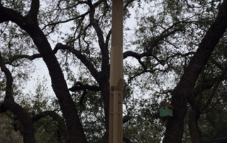 The owl box is up. It is a fine structure made of cedar and mounted on a high pole to keep squirrels out. Tim painted it a light tan to blend in among the oak trees and the rest of the backyard; it even fits in with the color of the house. So now we wait. A camera inside the box illuminates the inside, but so far the fresh sawdust has not been tamped down, though a titmouse did sit on the perch and peek in.